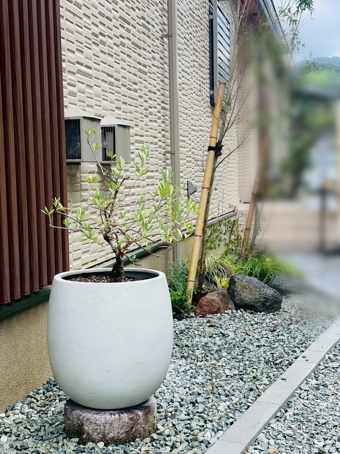日陰で湿気が気になるため、経年変化も美しい自然石を使用しました。